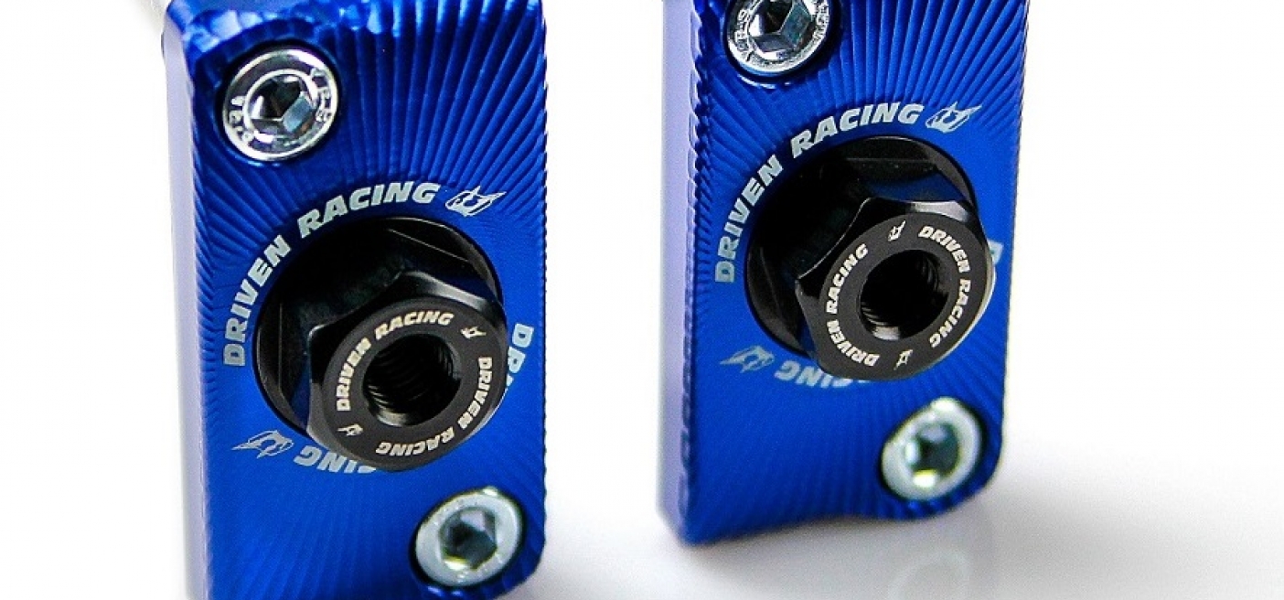 Driven Racing captive axle blocks for the 18-20 Kawasaki EX 400 Ninja are machined out of 6061 alloy using a 3D tool path. They are design to allow a wheel change without having to hold the axle blocks by hand .