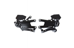 Brand new design for the 17-19 Triumph 765 Street Triple featuring extra wide heel guards and a beefy side plates design for more rigidity and crash survivability. Folding toe pegs and fully adjustable foot pegs are standard on all tt rear sets , as well as standard and gp shift.