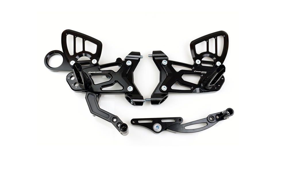 Brand new design for the 2020 BMW S 1000 RR featuring extra wide heel guards and a beefy side plates design for more rigidity and crash survivability. Folding toe pegs and fully adjustable foot pegs are standard on all TT rear sets , as well as standard and gp shift. since all our rear sets are made in house replacement parts are always available when needed.