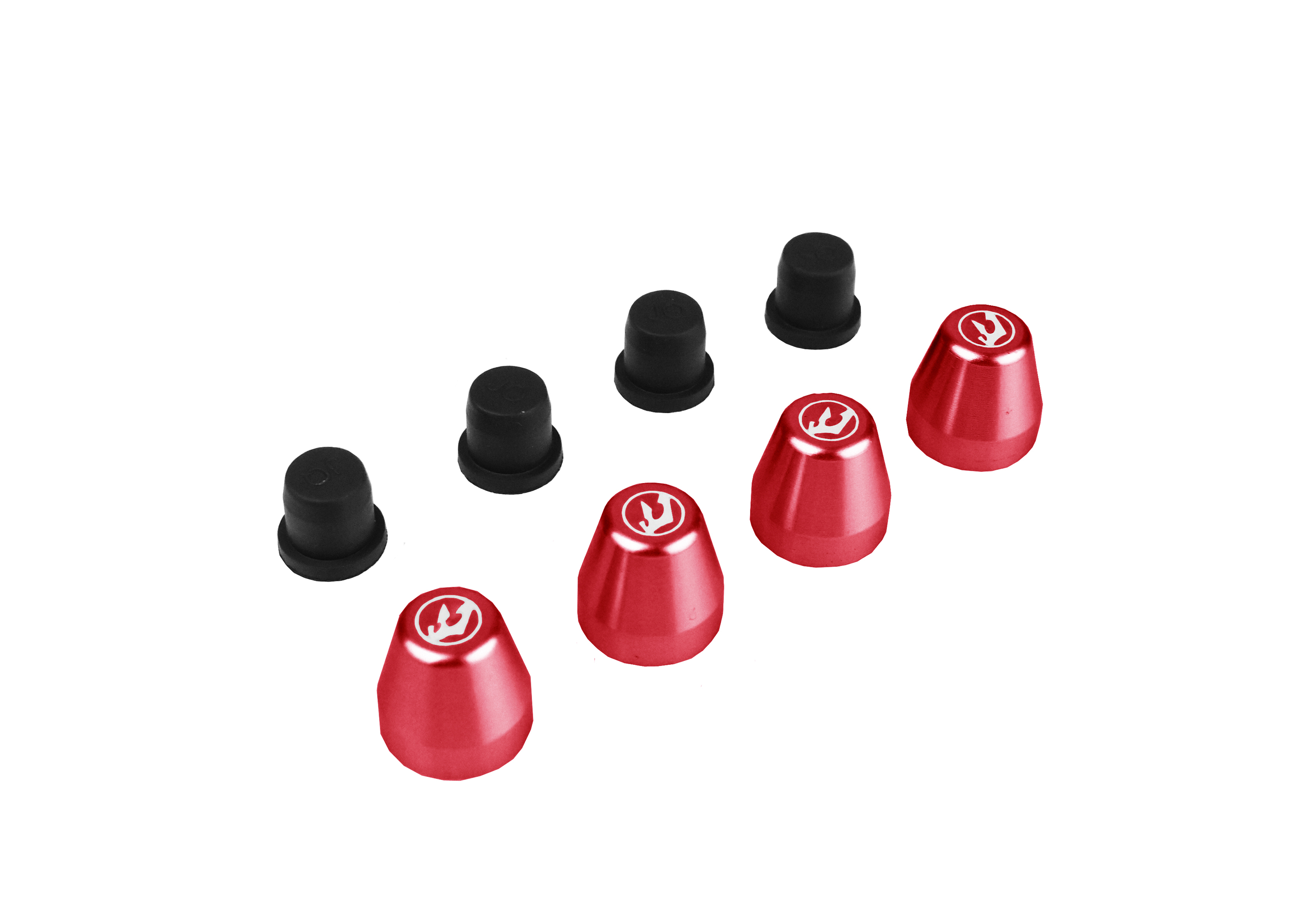 Machined out of 6061 billet rod and using a rubber bushing to hold the cover in place. This cover is both attractive and functional. Available as a set of 4 to handle front and rear calipers and front master cylinder. The cap is available in 5 anodized colors black,blue,red,gold and silver with the driven logo etched on top.