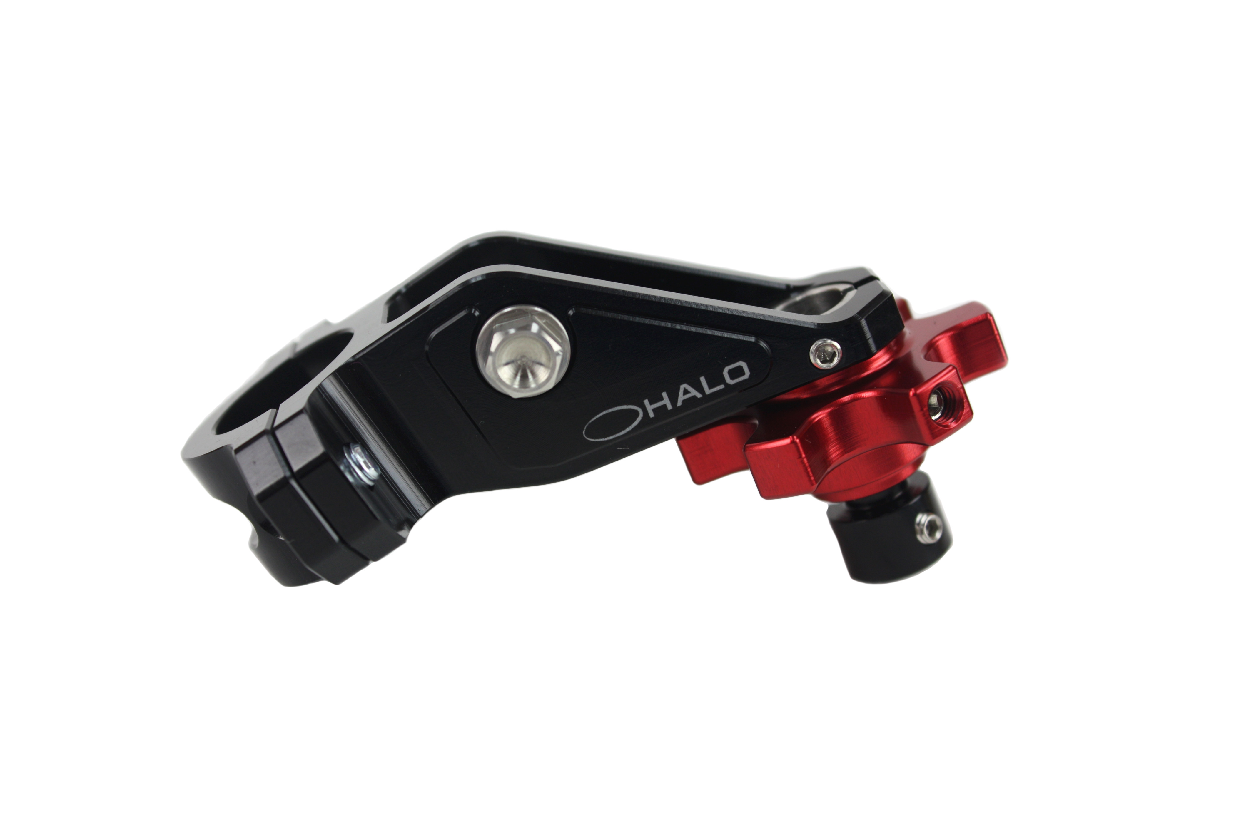 The Halo Clutch Perch is made out of billet aluminum. A one finger adjustable knob with a spring and ball detent, cable control adjustment. You can adjust your clutch cable while riding without removing your hands of the bars using one finger.