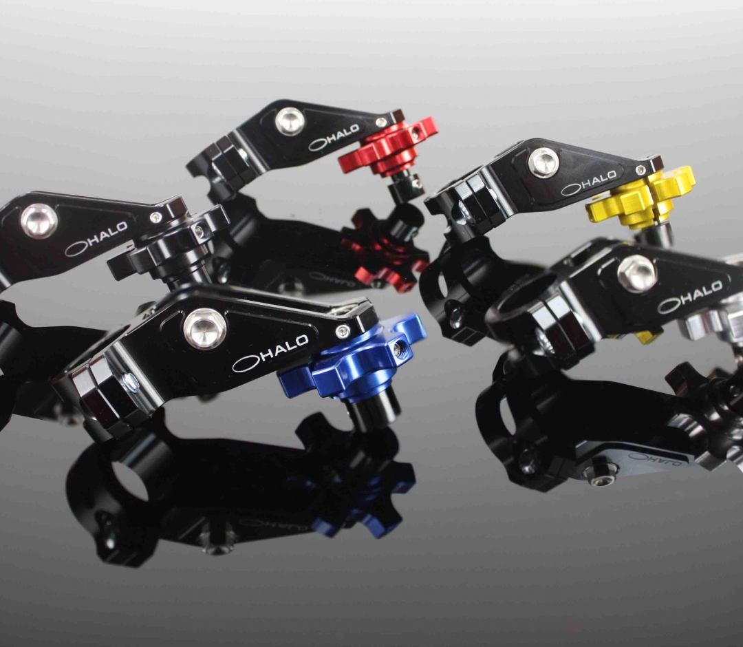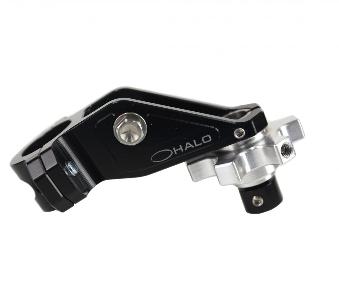 The Halo Clutch Perch is made out of billet aluminum. A one finger adjustable knob with a spring and ball detent, cable control adjustment. You can adjust your clutch cable while riding without removing your hands of the bars using one finger.
