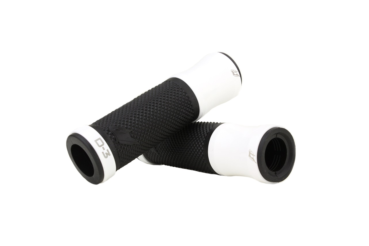 The limited edition D-3 grips using the same 2 ply kraton grips and aluminum colors , but we used powder coating to give the collars a more durable finish and different colors that can’t be done with the anodizing process. As indicated by the name these grips are very limited production and are not always in stock. Contact our sales team if you are interested .818-775-0041