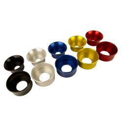 Machined out of 6061 T6 billet aluminum. Anodized in 5 vibrant colors to enhance your bikes appearance. Gives your bike the factory look. Designed to protect your front and rear axle nuts in an event of a crash. MADE IN USA