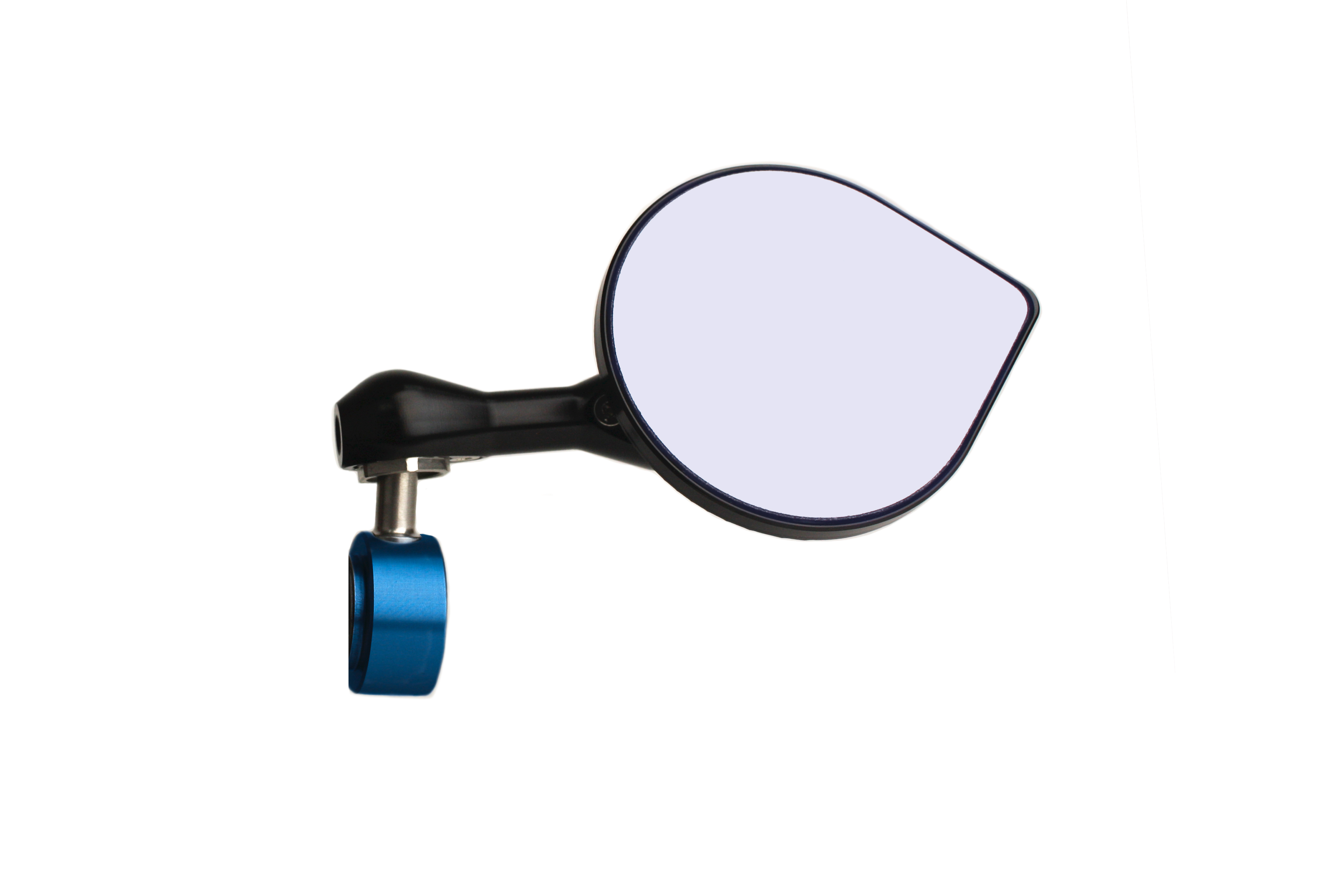The 3D tool path on the back of the mirror gives it a look like no other. It features a high-end made in America blue tinted convex glass that offers a wide field of view. The stainless steel pivots allow you a wide range of adjustment, or you can flip it in for running in tight traffic.