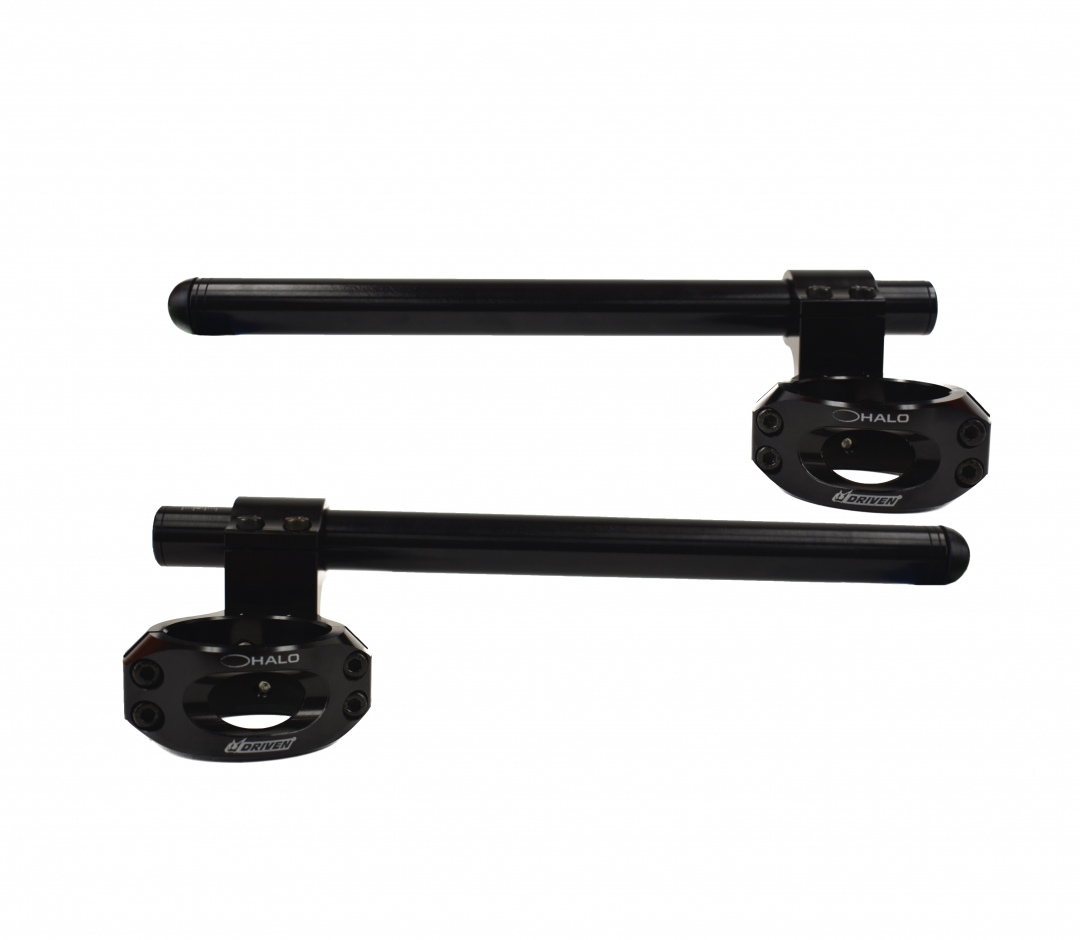 The all new Halo Riser series clip-on system. These new clip-ons come with a 1.5” riser and are designed to fit perfectly on bikes like the all new Yamaha R-3, new Honda CBR 1000RR/SP, or the new GSXR 1000/R.