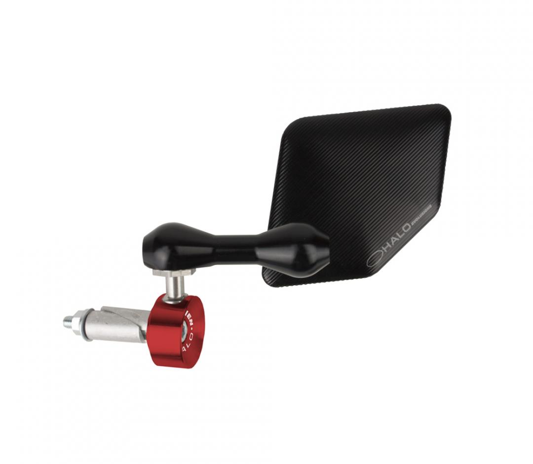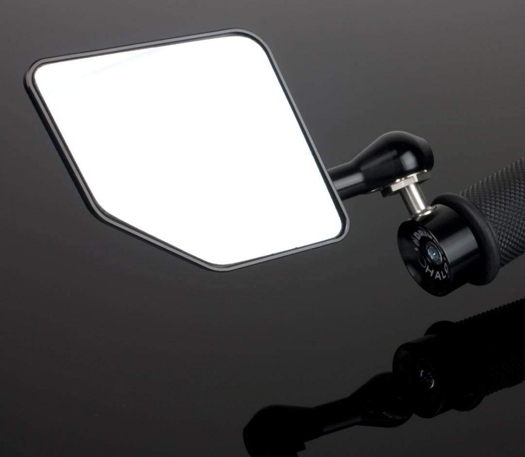 The Halo bar end mirror is machined out of a solid block or 6061 T6 aluminum using 3D machining to create our best looking and working mirror to date.