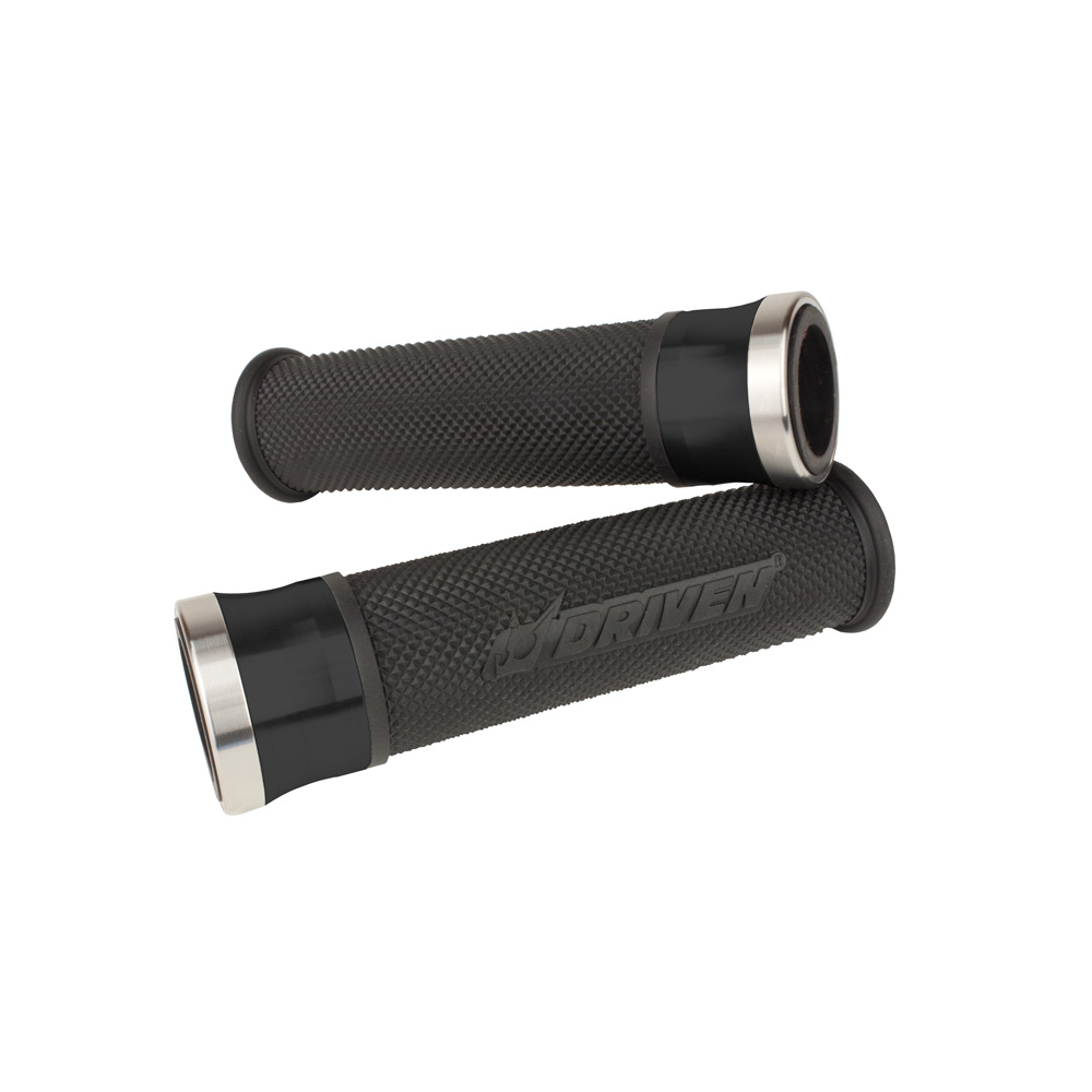 The all new Halo grip uses our proprietary craton gel material in a comfortable 2 ply grip at the end of the grip a hybrid of aluminum and stainless steel rings create a new look that will enhance any custom built motorcycle or your favorite ride.