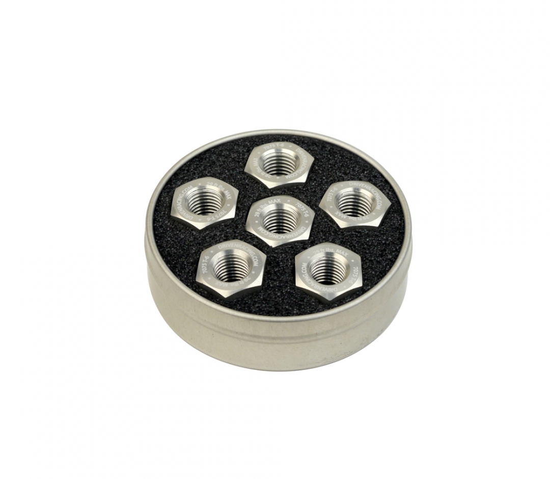 Machined out of 7075 billet alloy rod Bright dip anodized for corrosion resistance and laser etched with our logo and torque specs.