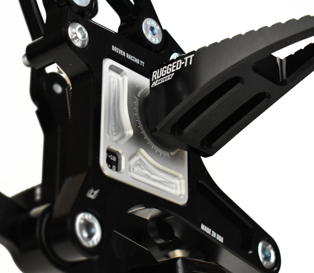 The TT Rugged rearset is our newest addition to the Driven family and allows a much more secure grip using the wide rugged upper on the peg. This new peg is non bike specific but was made with the 14' - 17' BMW R9T in mind.
