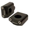 Machined from 6061 billet aluminum and then anodized in beautiful black. These universal bar mounts will fit directly into any 7/8" perch allowing the use of any 1 1/8" (fat bar) handlebars. There are two height options available as well, regular or high. These mounts have either a .75" rise or a 1.25" rise for the high version.