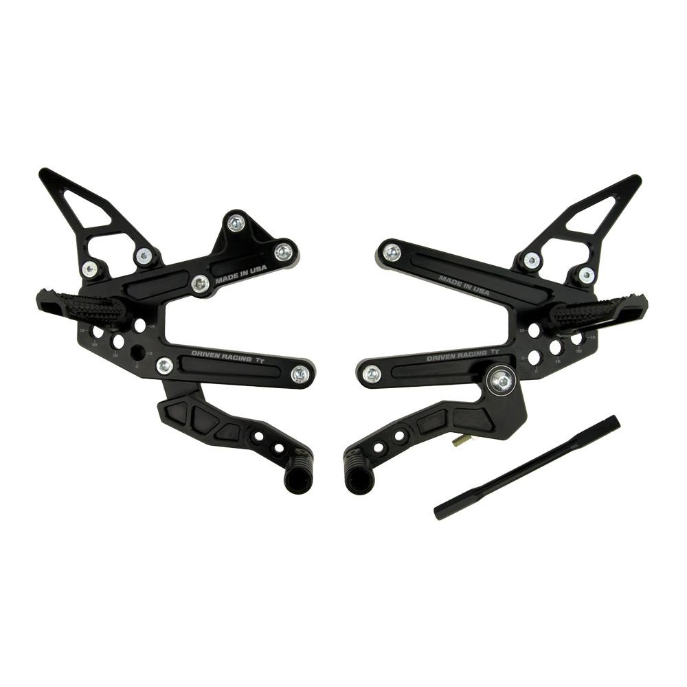 The DRIVEN TT 09-12 Kawasaki ZX6R rear set is made up of only essential components and materials. Retaining the very best of features you would expect from a Driven rear set. The race inspired TT model showcases the best components to achieve simplicity and efficiency on the race track. This kit comes with all necessary hardware to set up the Kawasaki ZX6R for either standard or reverse shift with no modifications.